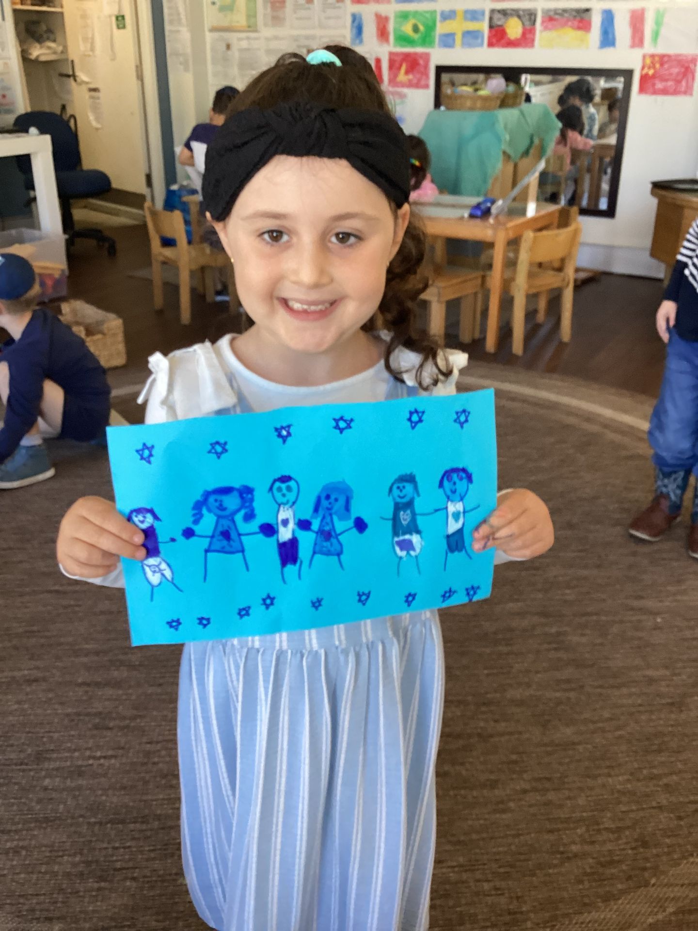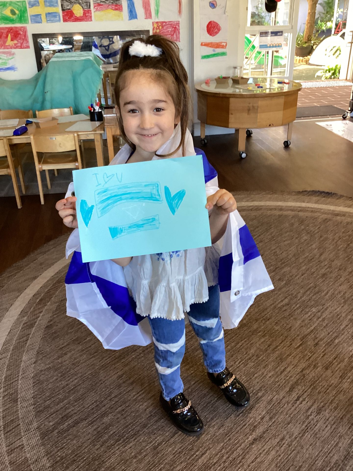 Responding to our children’s interest in showing support for Israeli soldiers, we set up writing and drawing tables at the front of each Early Learning campus. Families and children enthusiastically created artworks for us to send to Israel. This beautiful experience also captured the attention of the older siblings who would come at pick-up and drop-off time, and it’s been wonderful to see everyone getting involved.