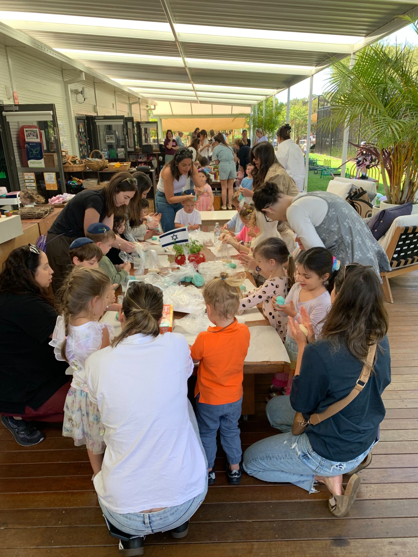 In a gesture of solidarity and support for Israel, our educators organised a blue and white challah bake for our ELC families. At the Saunders Family Campus, Ella Rossanis, a mum of one of the children in Parparim Adom, generously took on the role of being our baking master, guiding the children through this special experience. Families were warmly invited to join in, making it a memorable occasion.